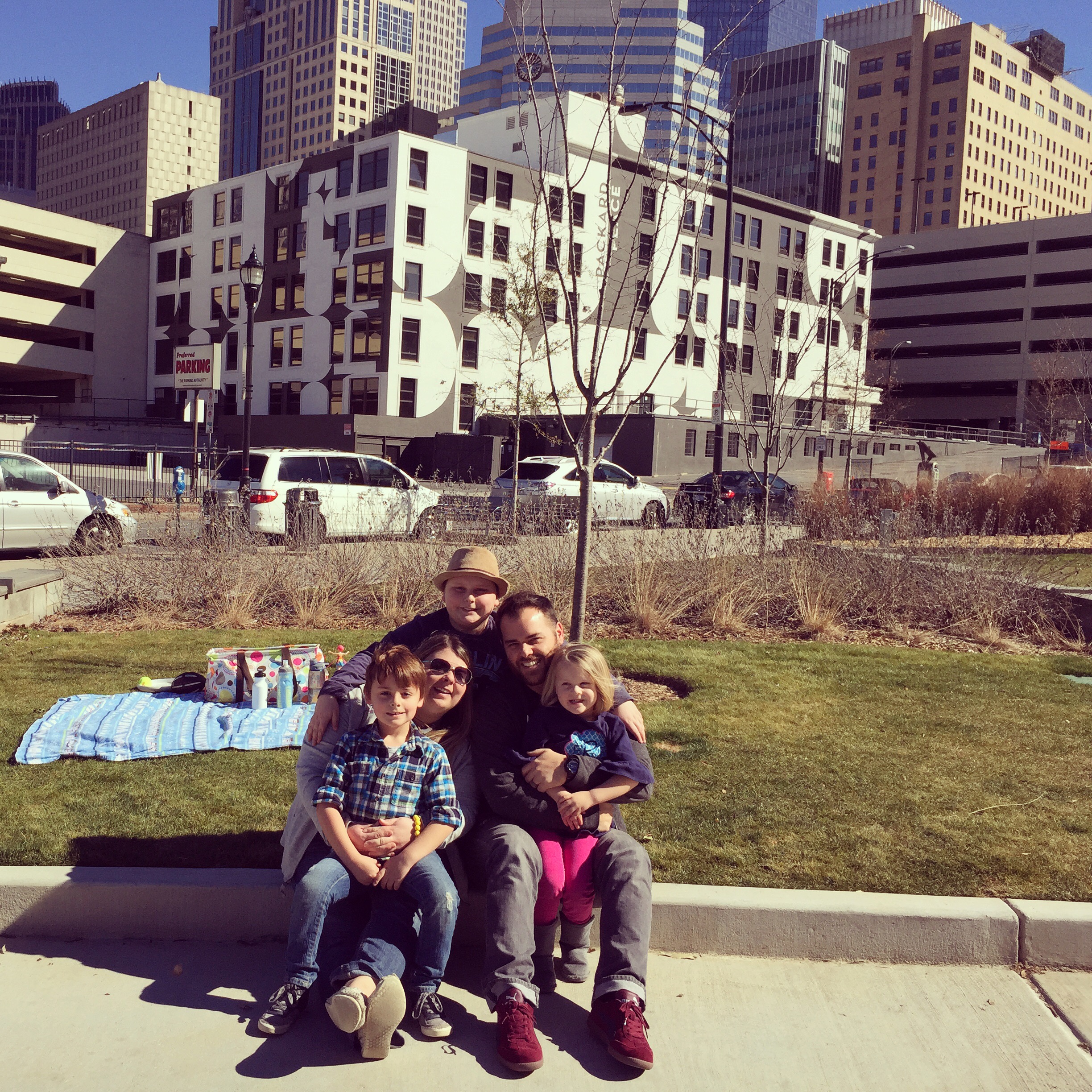 Last weekend the forecast was warmer than normal and with a whole lot of sunshine, therefore we planned to be outside as much as we could. After church Lara, being the most awesomeness wife and mommy, planned for us to have a picnic at one of our favorite parks which is downtown Charlotte (our whole family loves this city and loves being downtown so we do so as much as we can). It was such a good time! We ate lunch on a blanket, people watched (a favorite pastime for Lara and I), kicked the soccer ball around, cuddled, laid out on the grass, played a game of freeze tag, walked to find coffee (no coffee though, everywhere was closed! not the best part of the day), and laughed a lot.